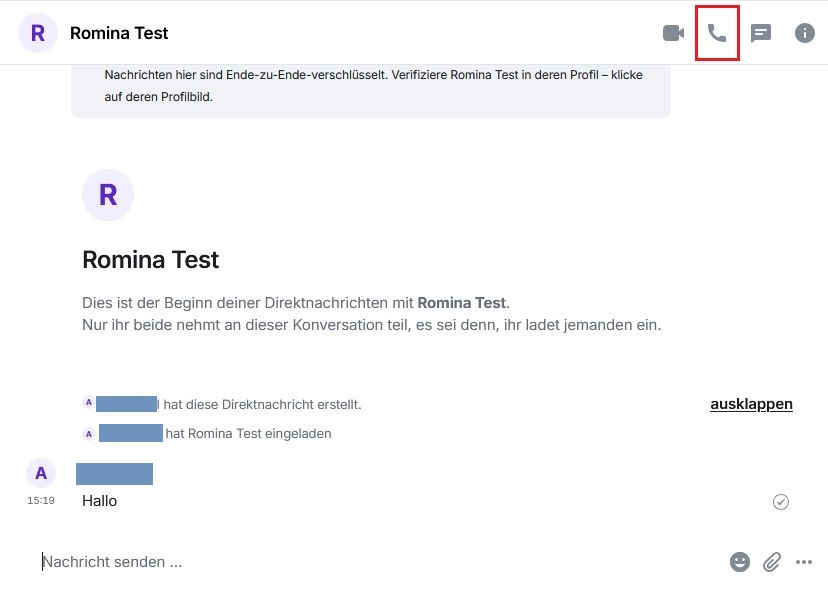 Hinweis: Ein Sprachanruf ist nur möglich, wenn sich die andere Person gerade im Chatraum befindet.