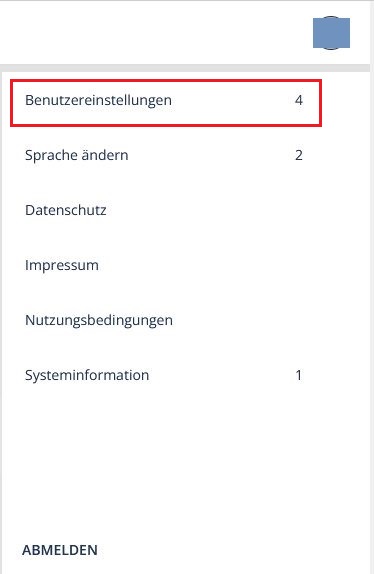 Nachdem Sie sich bei Agora angemeldet haben, finden Sie die Benutzereinstellungen im Benutzermenü oben rechts auf der Startseite. Eine Anleitung wie Sie sich einloggen finden Sie > hier.