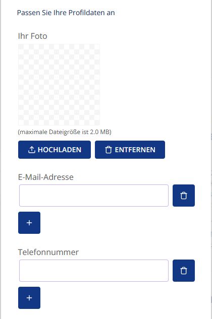 Hier haben Sie die Möglichkeit, Ihre Profildaten anzupassen. So können Sie z.B. ein Profilfoto hinzufügen und Ihre Kontaktdaten vervollständigen.