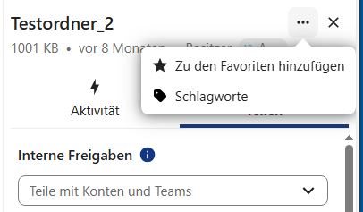 Im Drei-Punkte-Menü können Sie den Ordner/die Datei Zu den Favoriten hinzufügen und Schlagworte vergeben.