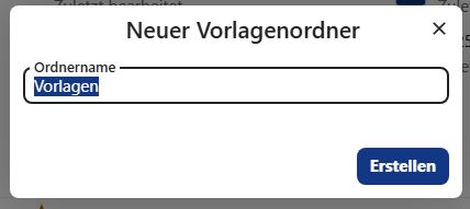 Ein neues Fenster öffnet sich. Hier können Sie einen Namen für den Vorlagenordner eingeben. Meist ist es sinnvoll, den Namen “Vorlagen” beizubehalten. Drücken Sie anschließend die Eingabetaste oder klicken Sie auf Erstellen.