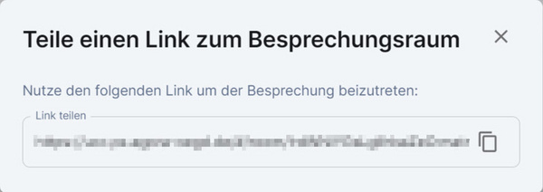 Link teilen: Erzeugen Sie einen Link zum Besprechungsraum. Der Link wird in einem neuen Fenster geöffnet. Klicken Sie auf die Schaltfläche In die Zwischenablage kopieren rechts neben dem Link. Sie können den Link auch auswählen und von Hand kopieren. Nun können Sie ihn an anderer Stelle einfügen und auf verschiedenen Wegen (per E-Mail, Chat etc.) mit den gewünschten Personen teilen.