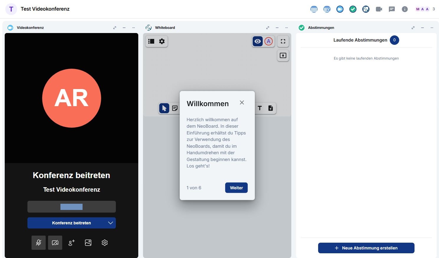 - Abstimmungen: Mit diesem Widget könnnen Sie Abstimmungen mit den Teilnehmenden Ihrer Besprechung durchführen